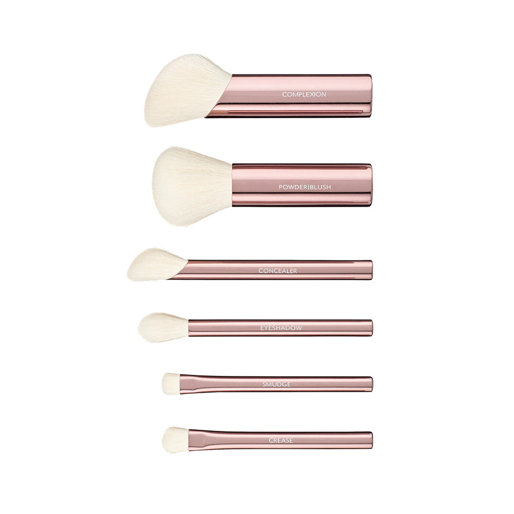 - Set includes 6 brushes for Complexion, Powder/Bronzer, Concealer, Eyeshadow, Crease and Line/Smudge.