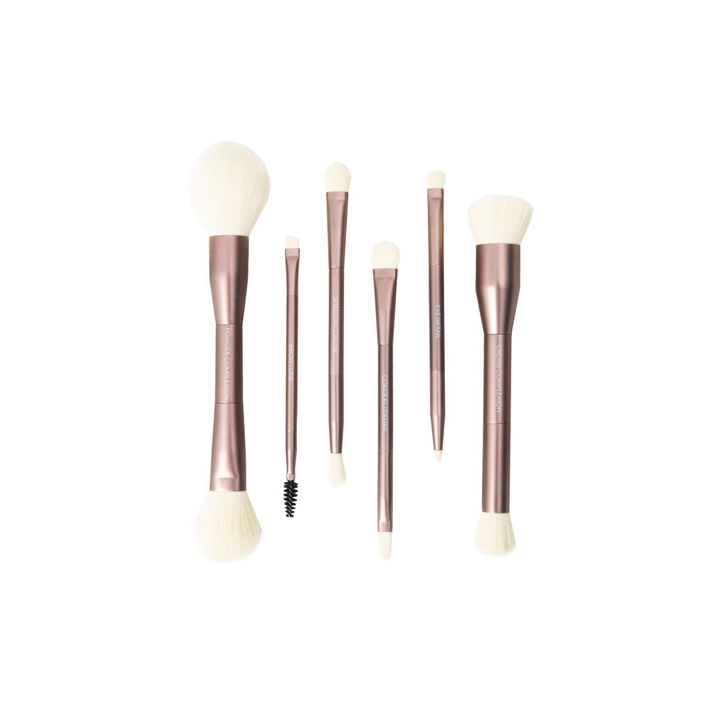 - Luxurious and practical set of 6 dual-ended makeup brushes that can help you apply any product in your kit.